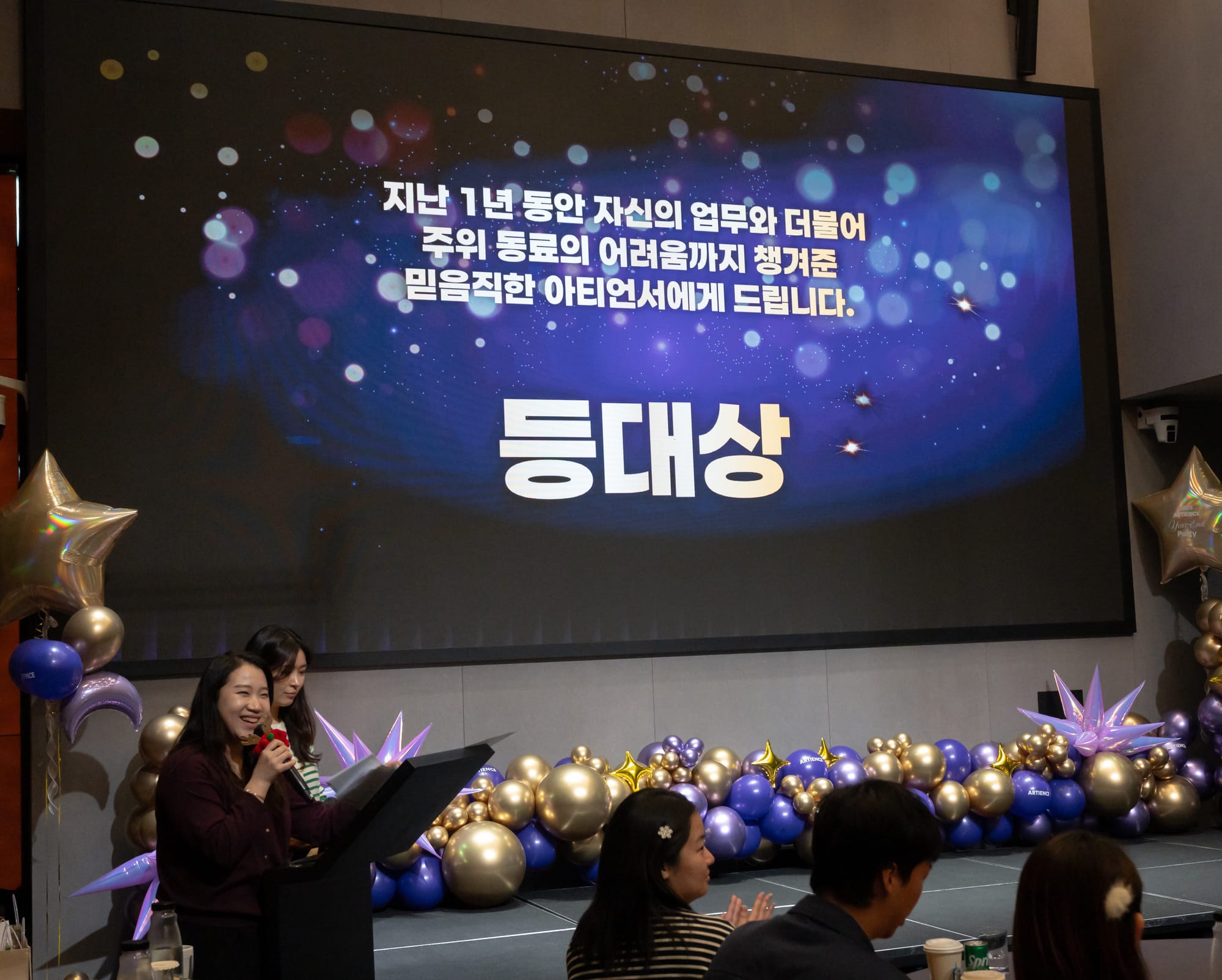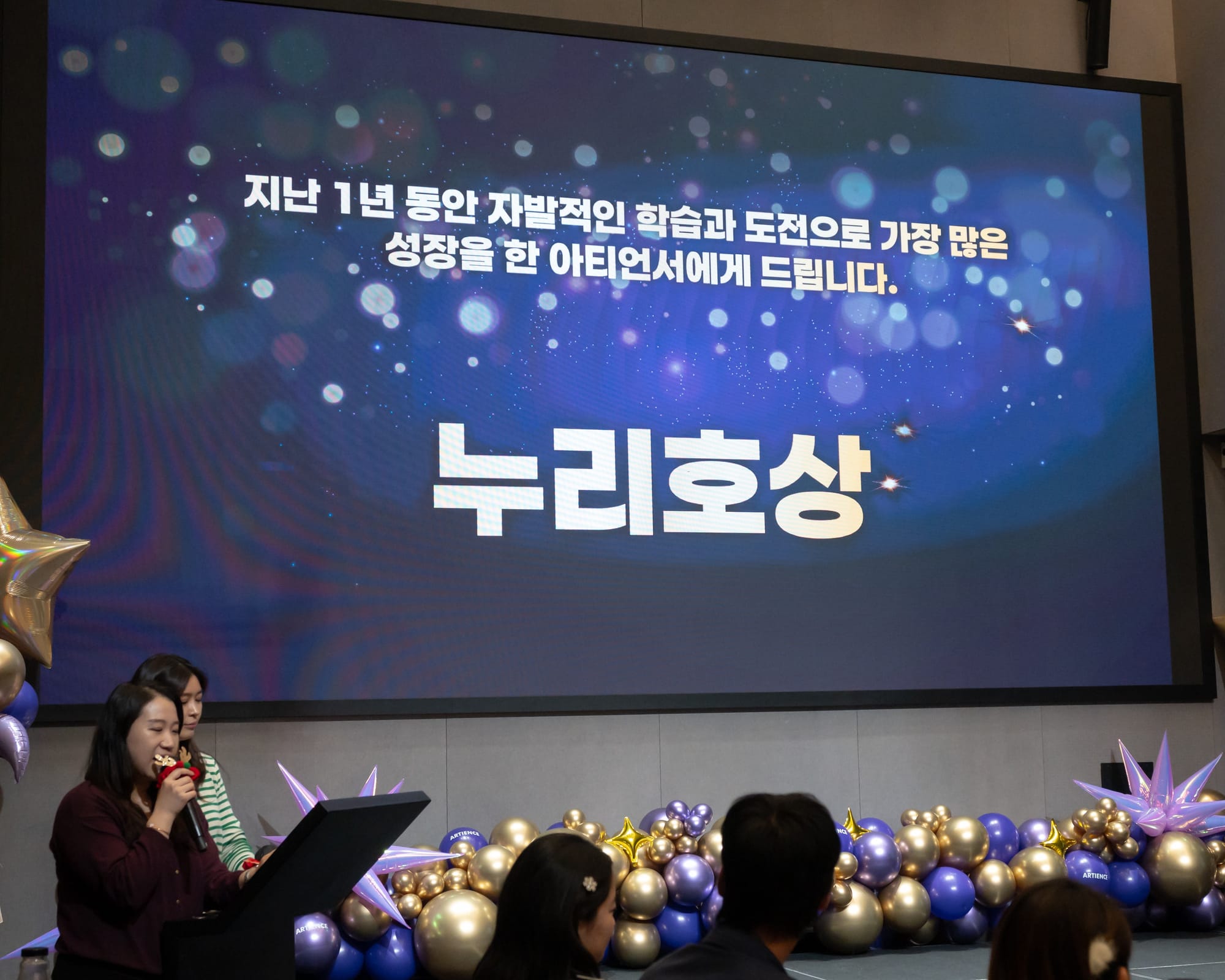첫번째 순서는 2025 Artience Awards! 한 해 동안 각자의 자리에서 최고의 역량을 보여준 아티언서들을 위한 시상식이 진행되었습니다. 아티언스 어워즈는 항상 임직원들이 직접 뽑은 투표의 결과이기 때문에 의미가 더 깊은 상입니다.